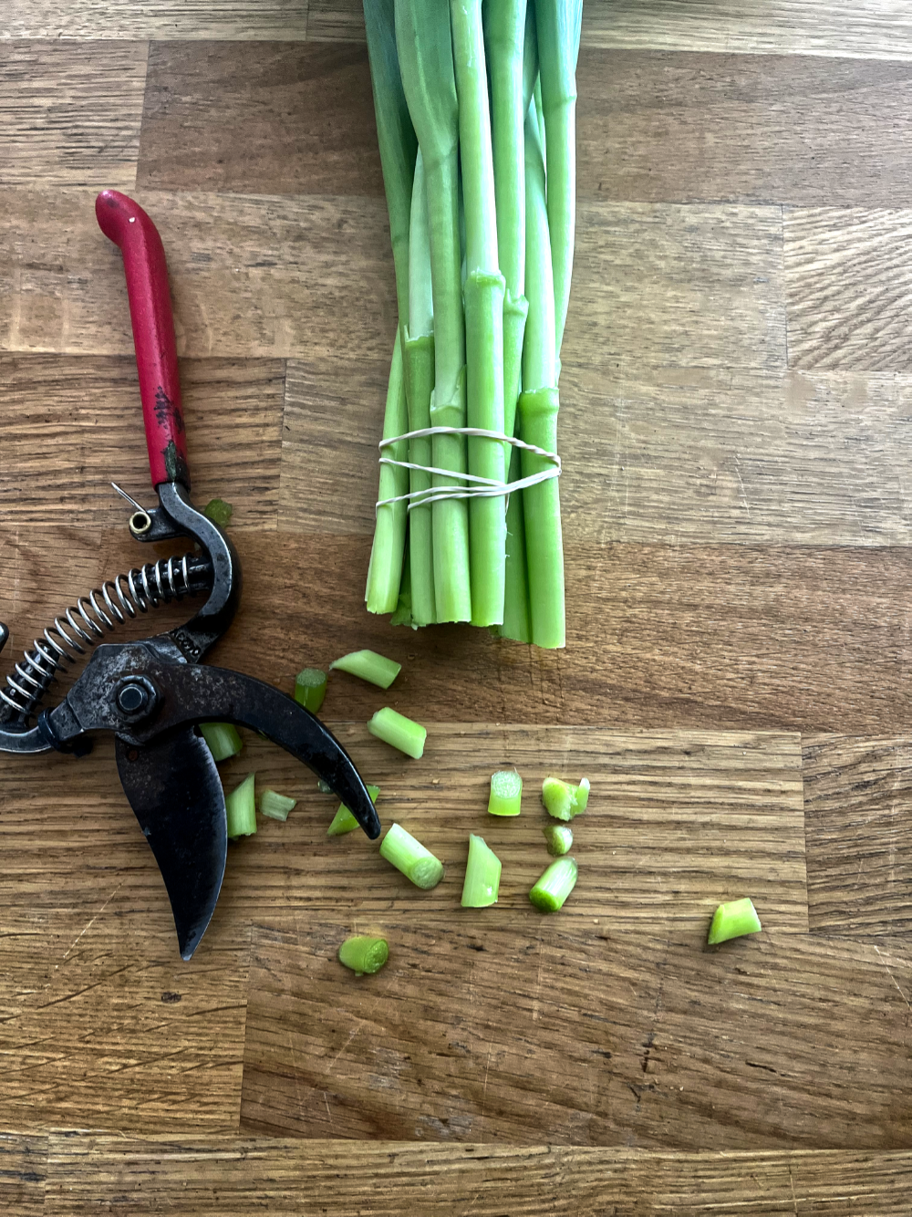 Give them a fresh cut if the ends of the stems look dry. Cut off about a half inch of the stem. Use sharp pruners or a sharp knife.